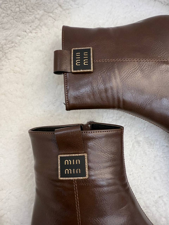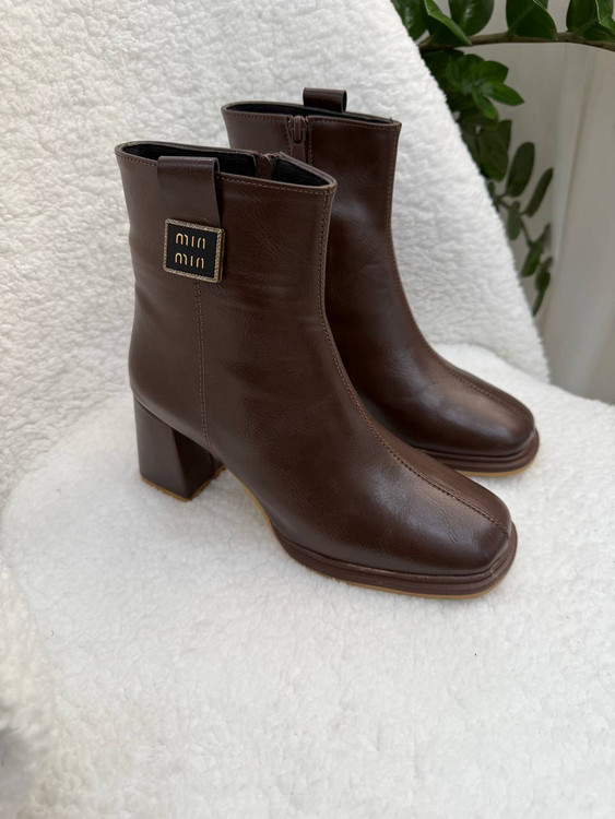 نیمبوت پرطرفدار miu miu دو رنگ قهوهای و مشکی پاشنه ۵ سانت و فوق العاده راحت مناسب استفاده روزانه و مهمانی